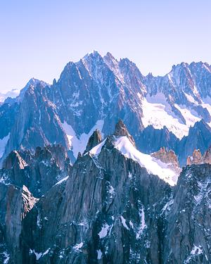 Mont Blanc wears innumerable layers of jagged peaks surrounding it like a crown.